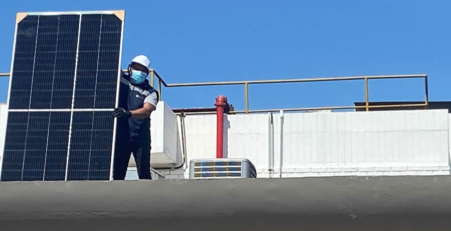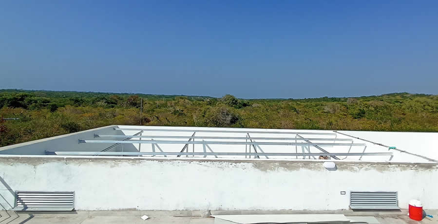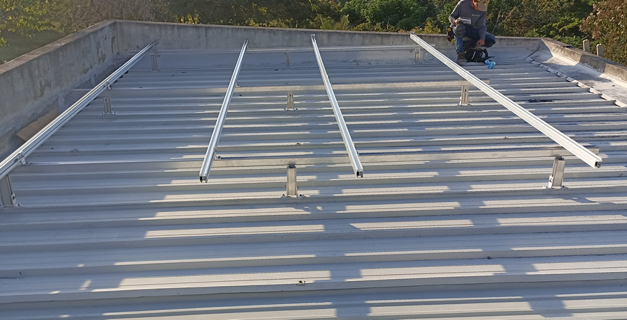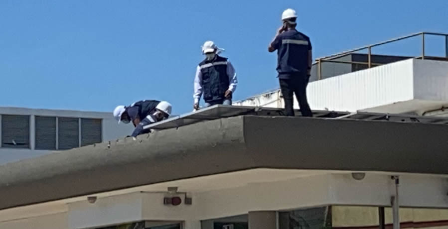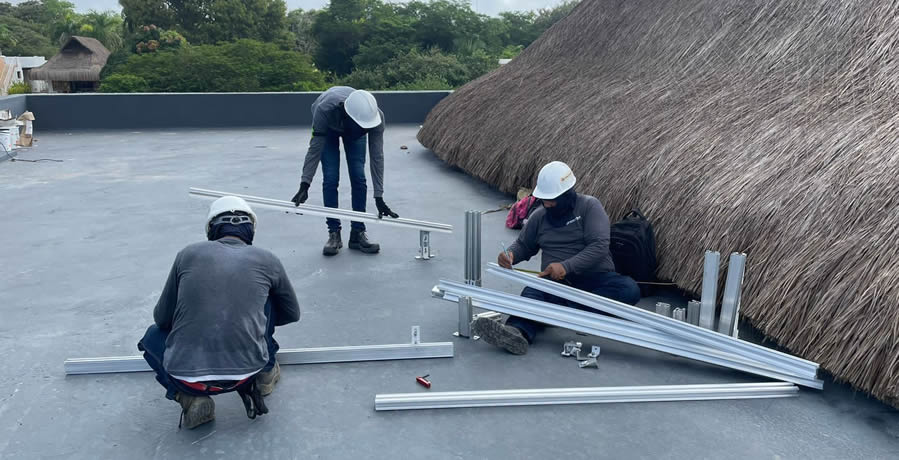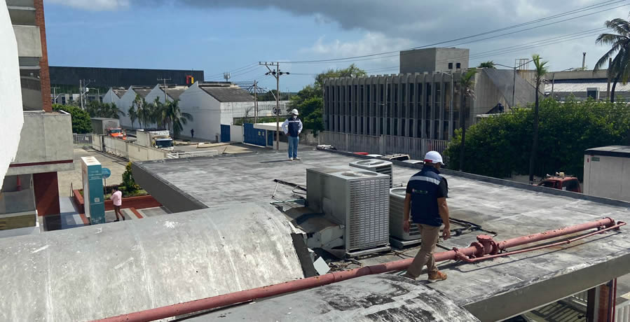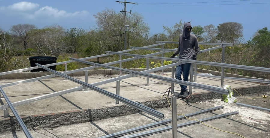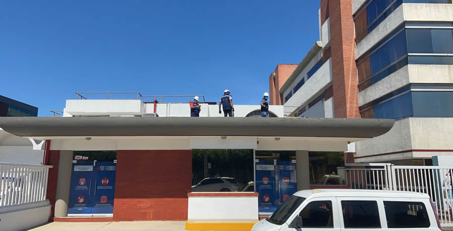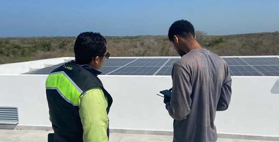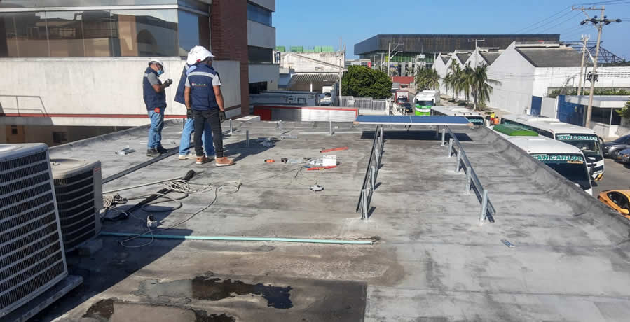 Inspección de cubierta donde se instalarán los paneles solares sobre estructura fija.