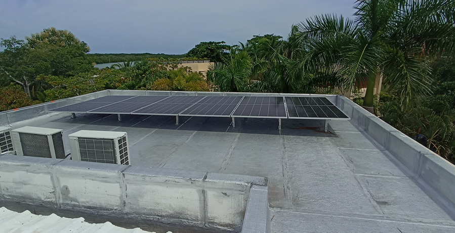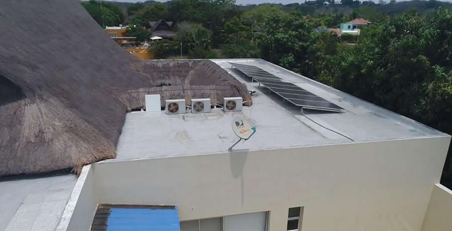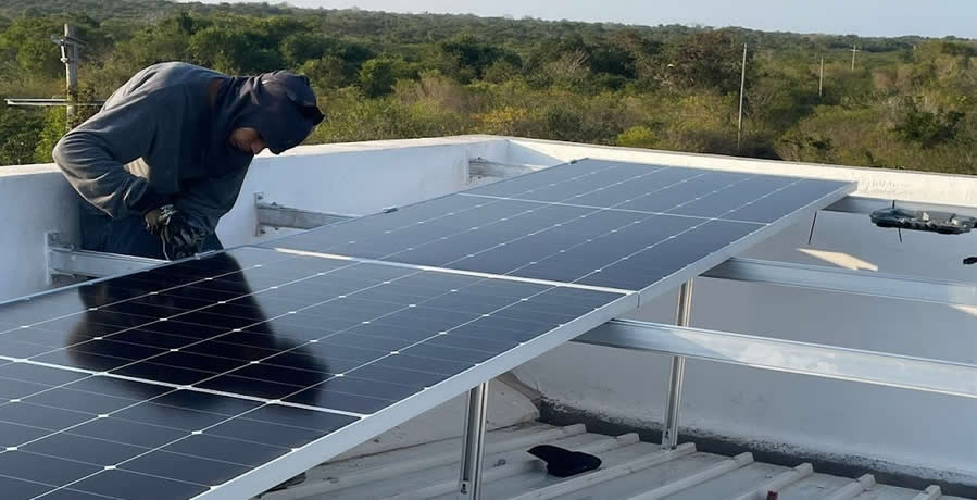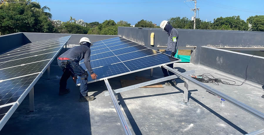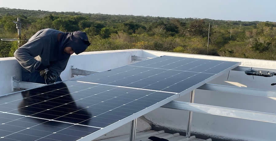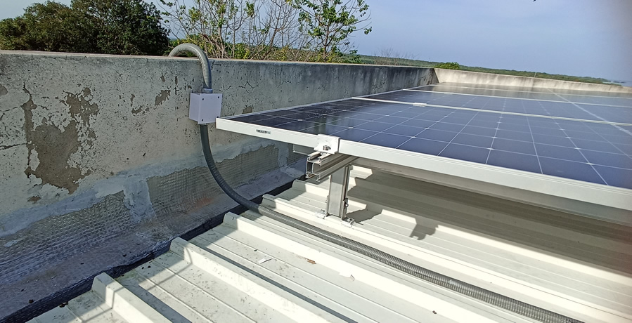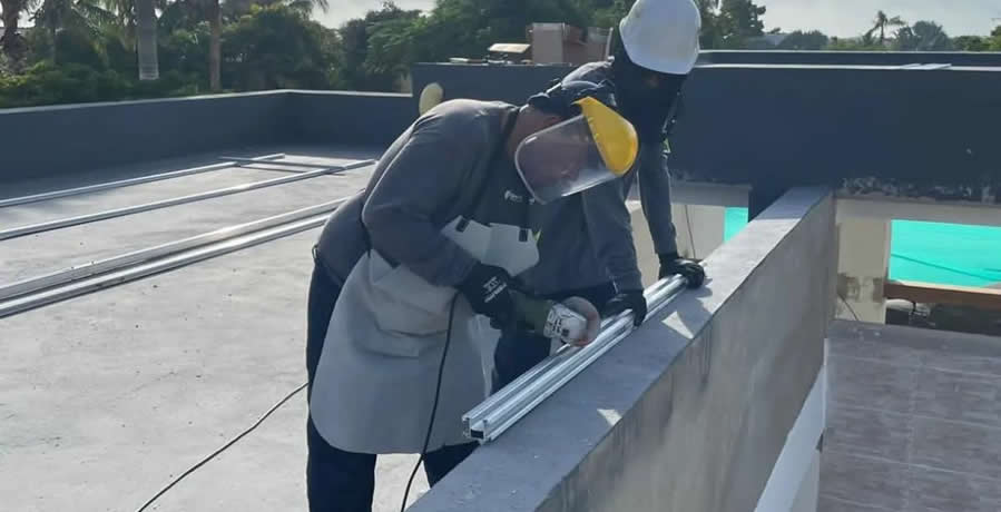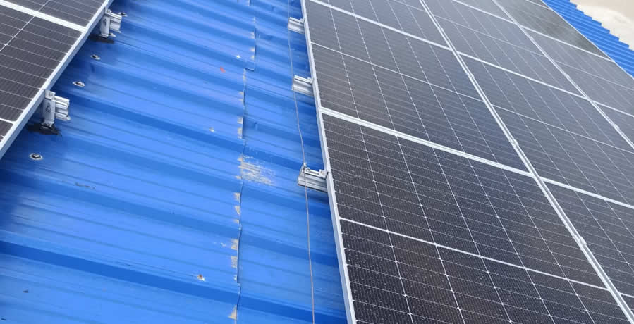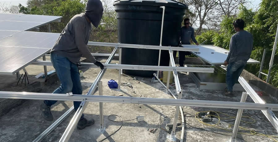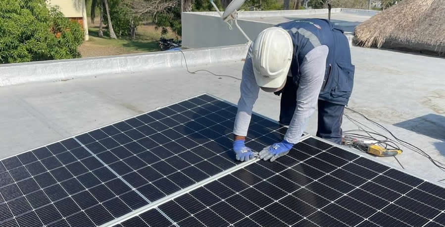 Inspección de cubierta donde se instalarán los paneles solares sobre estructura fija.