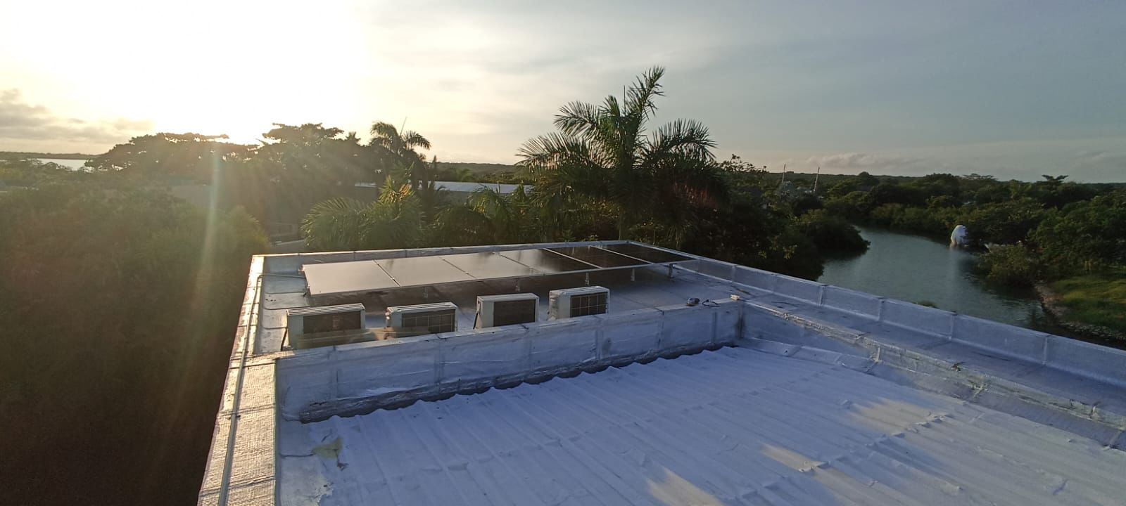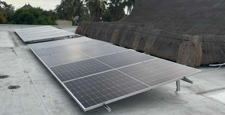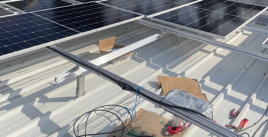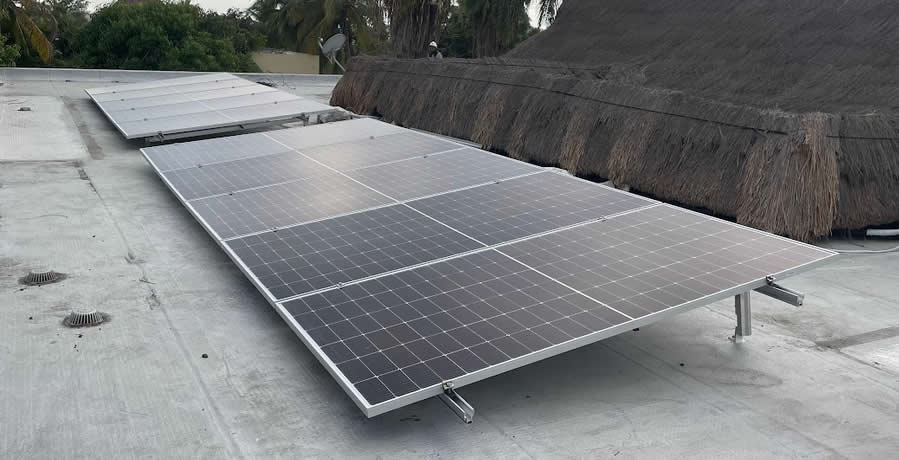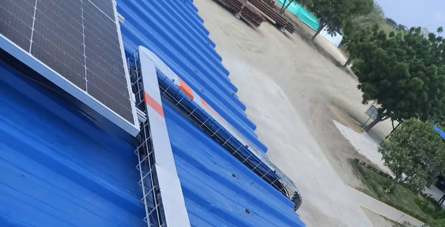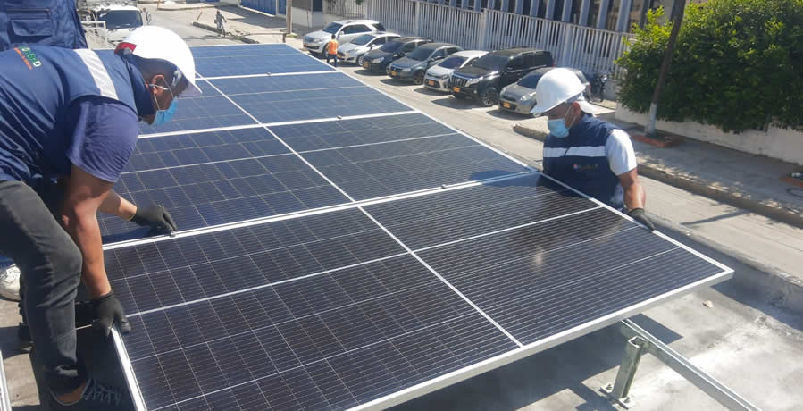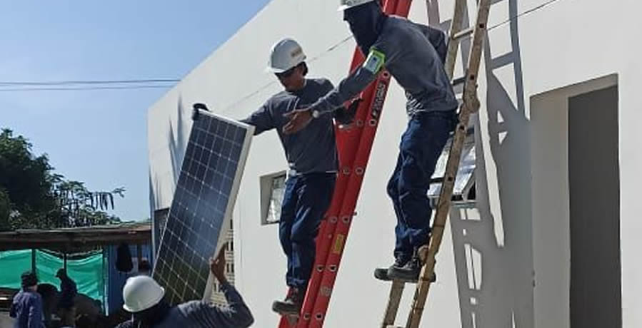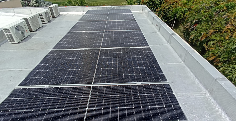 Inspección de cubierta donde se instalarán los paneles solares sobre estructura fija.